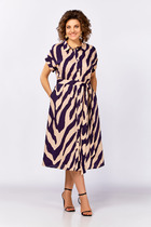Платье Swallow 740.2 Нежно-кремовый в тёмно- фиолетовый принт