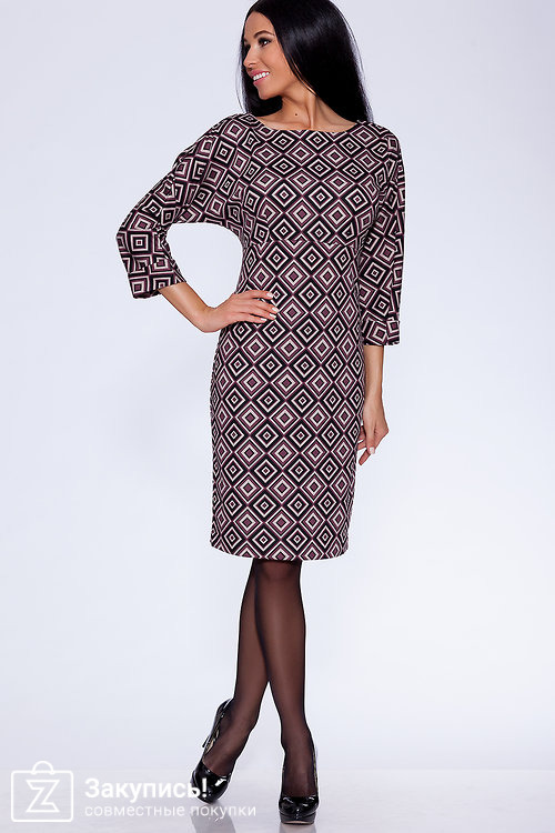Ромбовое платье - фирма ТриКа, 46рр (#8853). Верх свободно, низ - в обтяг!!!! если бы взяла свой 44й, то вообще б не налезло. Ткань рыхловата и расцветка не совсем как на фото. Коричневый темнее и не такие четкие границы