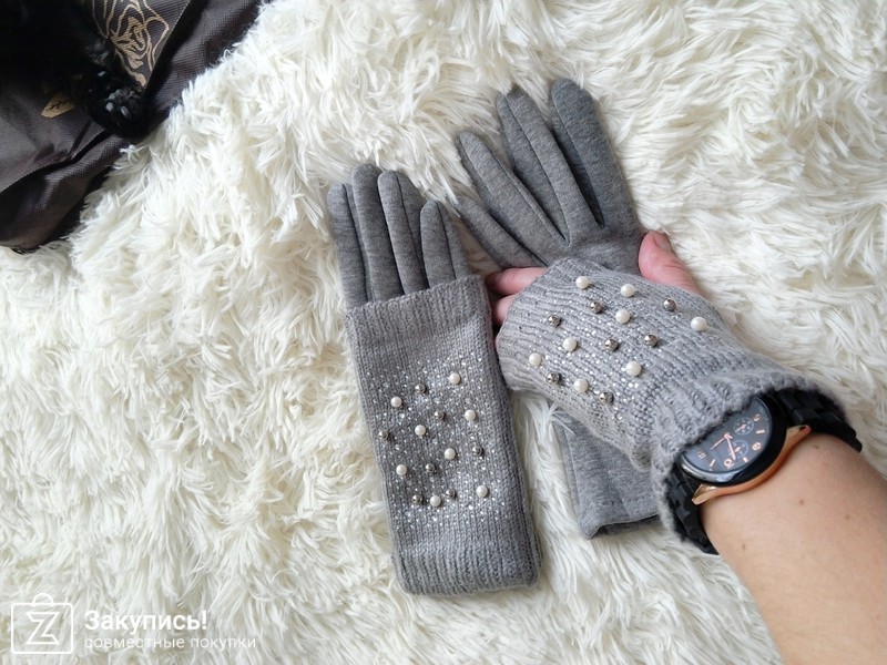 Про кролика писать не буду все и так уже сказано, перчатки с митенками супер, теплые, красивые, стразы крепко сидят, бусины на заклепках намертво приделаны берите не пожалеете. У меня размер перчаток 6²½, внутри меховой начес, они хорошо тянутся.