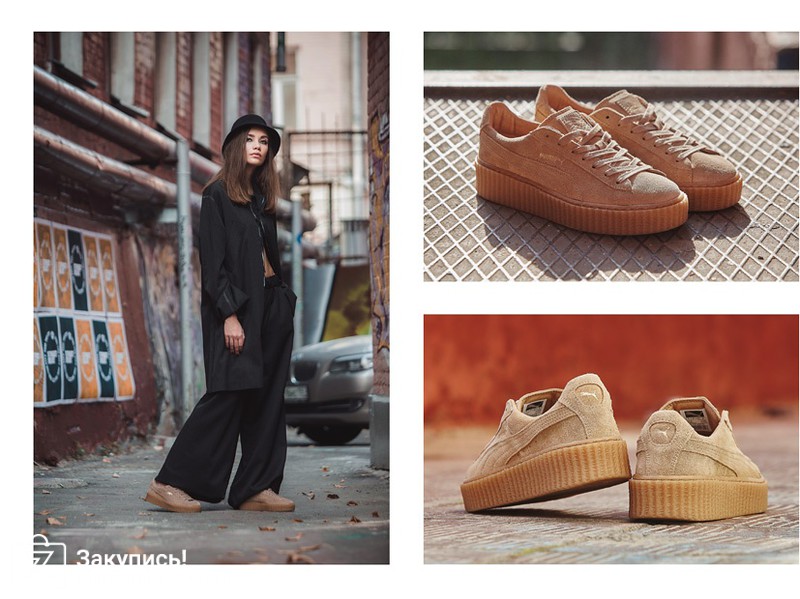 Кеды-кроссовки Puma Rihanna (замшевые бежевого цвета).
