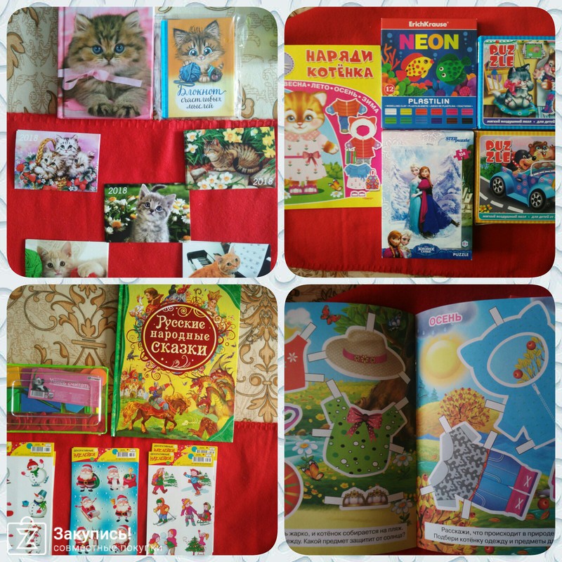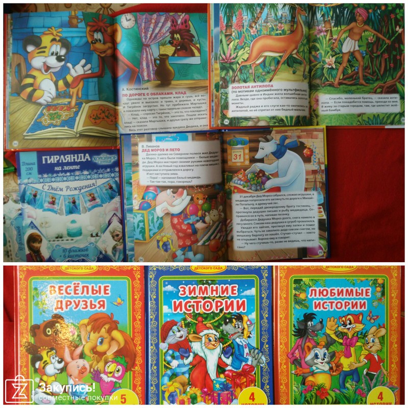 Ещё брали книги, раскраски, в тонкой книге Новогодние стихи картинки понравились. Серию у Росмэн \"Все лучшие сказки\" почти всю собрали, недорогая, большой формат, где то есть нормальные иллюстрации, где то компьютерная штамповка, попадается сокращенное изложение,читаю заранее отзывы на др.сайтах. Спасибо за закупку.