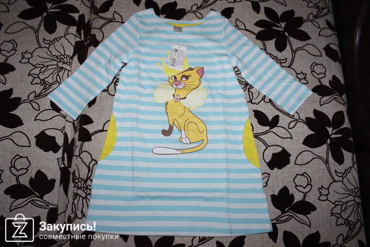 Милейшая кофточка, качество хлопка и принт отличное, тянется хорошо. Цвет малиновый, чуть полиняло, идёт в размер (на наш рост 102см заказала 104 размер). Все прошито аккуратно и хорошо. Ещё один плюс низкая цена. Дочка довольна. Рекомендую одежду этой марки.