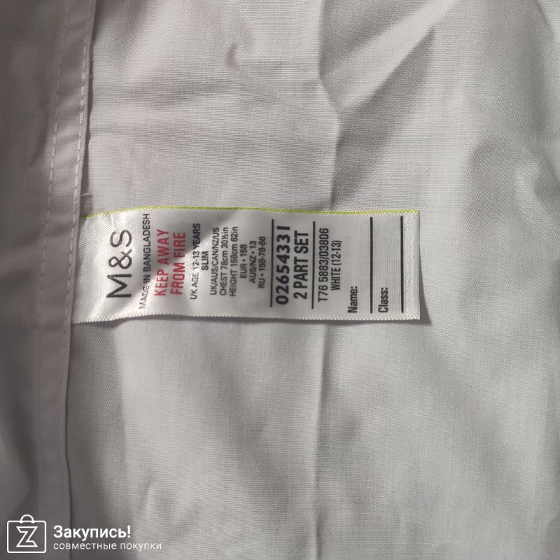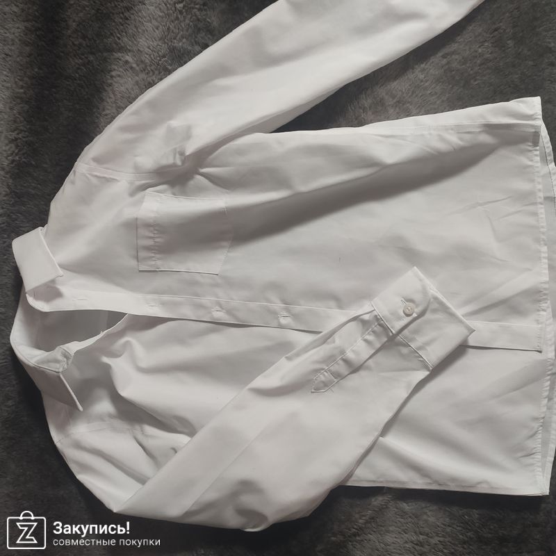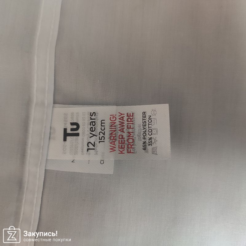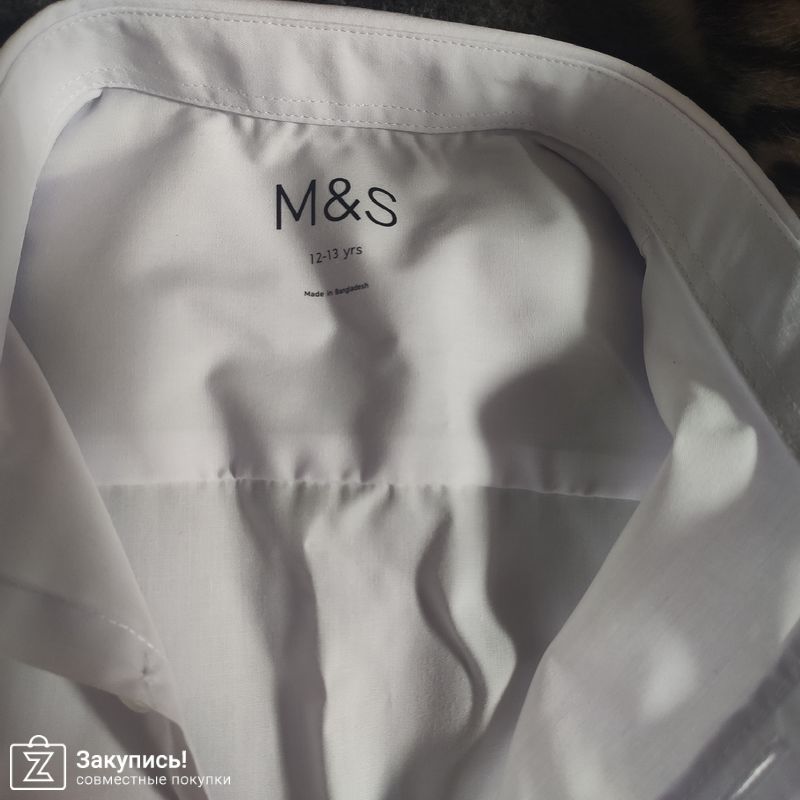 Покупала в рядах. Хорошая рубашка с длинным рукавом. На торжественные случаи. Взяла размер на 12 лет, советую ориентироваться не на возраст, а на рост ребенка. Беру обычно школьное в Asda, здесь впервые взяли и не разочаровалась! На фото видно, что даже боковые швы подогнуты и застрочены.