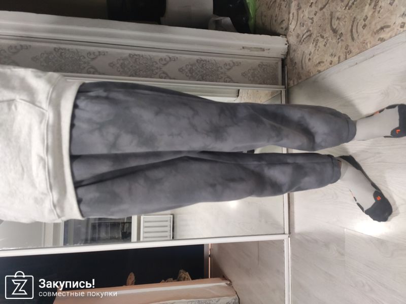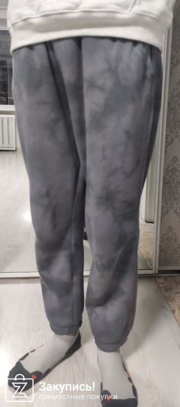 Взяла такие мраморные штаны с разводами размеры XS( сыну) и L(мужу) в итоге XS подошёл только дочери на рост 162см. Видимо чем больше размер, тем больше длина изделия, а L носит сын (по длине как раз (у него рост 183см) по ширине как на 48 размер). На фото две пары. Одни затасканы /в катышках и выцветшие, другие новые. Обошлись совсем дёшево, доллара по 4,5.