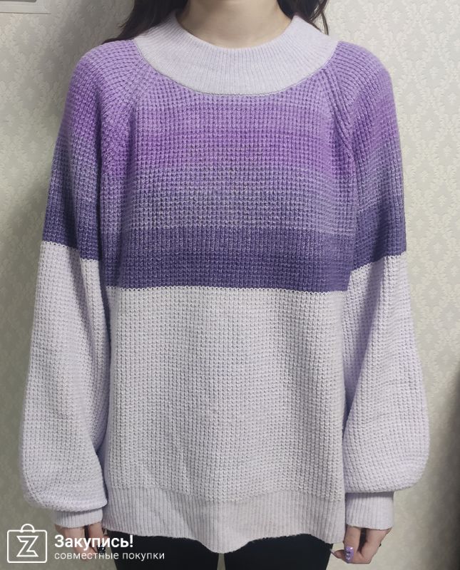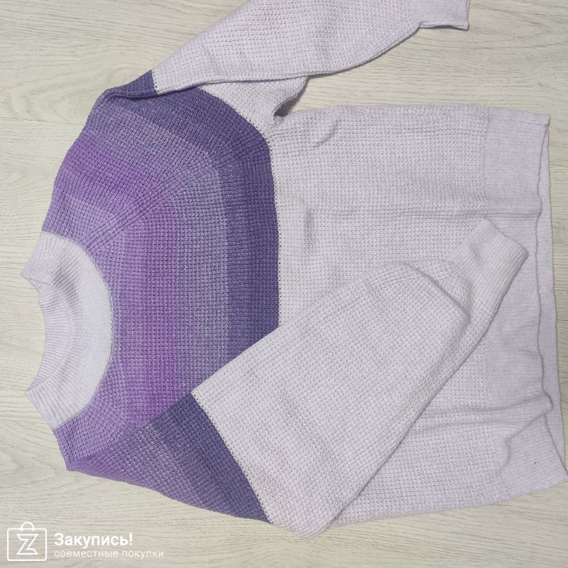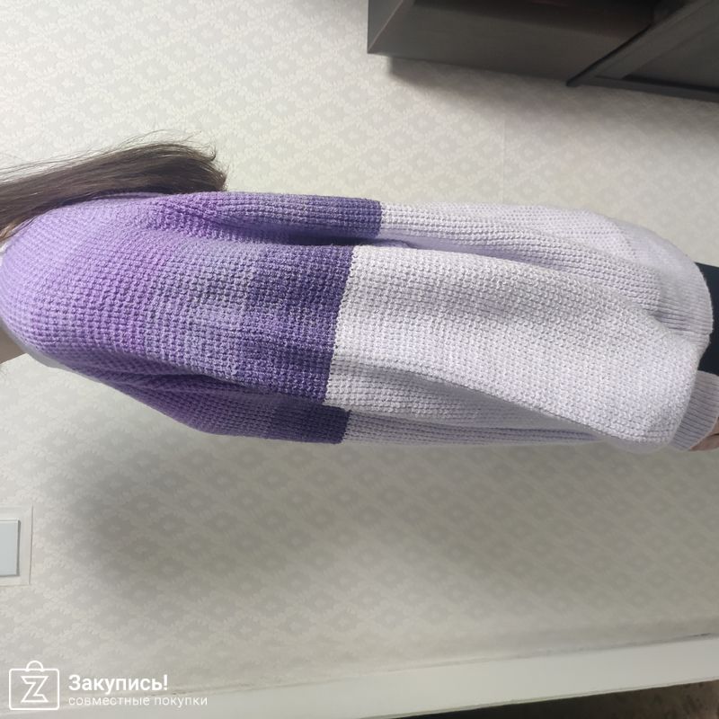 Связано резинкой поэтому подойдёт и на 40-42 как оверсайз и на 48 на фото видно что и на мне и на дочке хорошо / она переднюю часть свитера в брюки заправляет. Мягкий, приятный к телу.