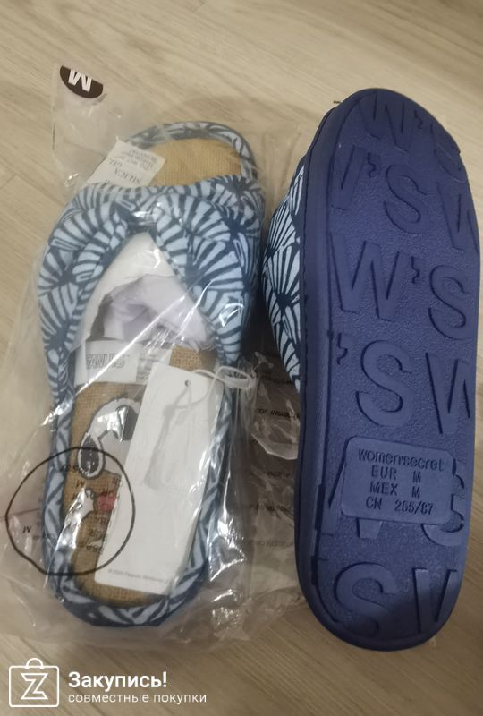Брала тапки в конце июля (на распродаже) на подарки гостям в Новый год под елочку. 1) WOMEN\'SECRET Zapatillas destalonadas velour más sostenible Это серые меховые, очень мягкий и нежный мех. Размер L примерно на 39-40. 2) WOMEN\'SECRET Zapatillas destalonadas marfil Белые в пятнышку. Эти размер М, на 38-39, они мне больше понравились, так как есть углубление для стопы, нога не соскользнет. 3) Womensecret Zapatillas abiertas nudo estampado conchas Snoopy Я думала они клеенчатые, оказались тряпичные. Веселые, молодежные. Все тапочки пришли с этикетками, в упаковке, очень нарядные и красивые.