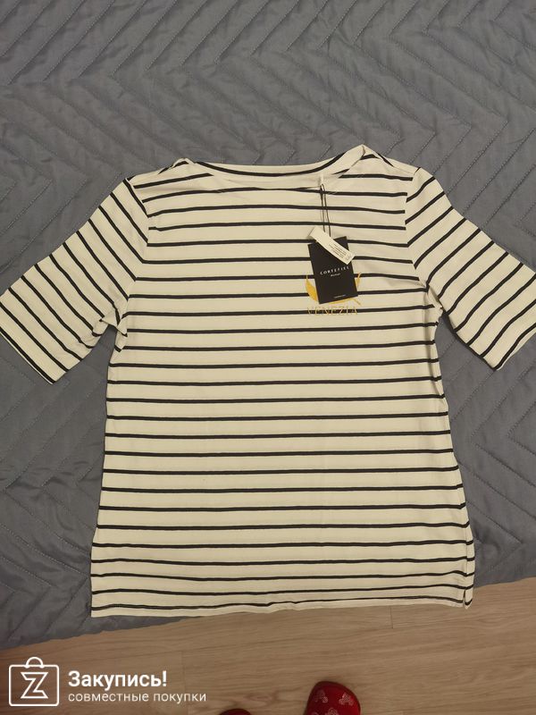 Футболка удлиненная, ворот немного лодочкой. Трикотаж очень плотный, тянется. 95% хлопка, 5% эластана. С разрезиками по бокам. Немного расширяется к бедрам. Но все равно размер М мои бедра 102 см чуть обтягивает, впритык. Цена 666 руб + доставка 360 руб