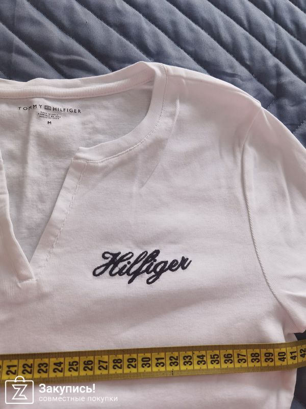 Футболки от Томми приходят совсем разные. Например, вот эти две футболки размер М. Первая с разрезиком на горловине TH ESSENTIAL SPLIT-NECK T-SHIRT Bright White Она в обтяжку, из плотного тонкого трикотажа. Смотрится необычно, но приходится (из-за того что сильно обтягивает) надевать под что-то. А жаль. Вторая TOMMY HILFIGER ESSENTIAL FLAG T-SHIRT Bright White побольше, сидит свободно, но материал жуть какой тоненький, почти просвечивает, хотя и 100% хлопок. Мужу не нравится из-за того что смотрится как-то дешево. На моих фото обе футболки после стирки.