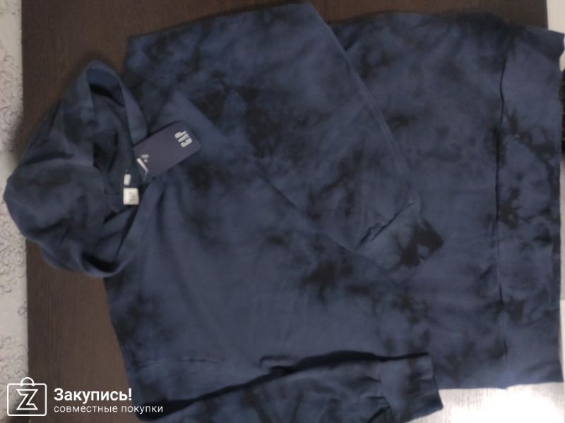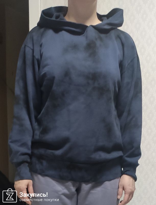 Худи, подходит как мужчинам, так и женщинам. Цвет сине-серый. По параметрам, размер М: ширина изделия (подмышками)56см. Ширина по плечам 57см, длина рукава 54 см, длина рукава до горловины 69 см, длина изделия 68см.