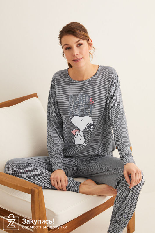Womensecret Pijama largo Snoopy Read & Sleep gris размер: XS