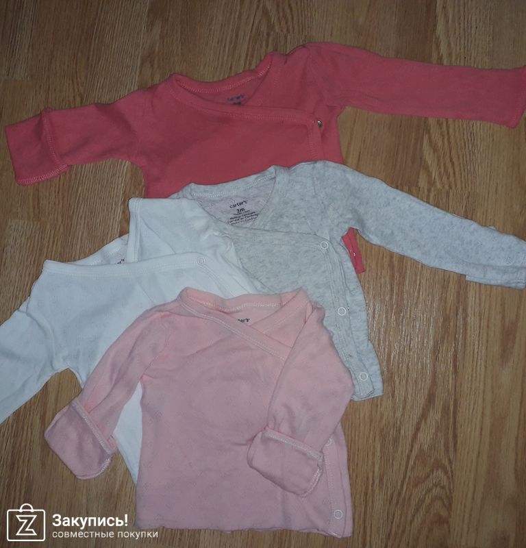 Carters. Набор лялечных распашонок. Мягкие, нежные хлопковые распашанки в рубчик в форме сердечек🥰 мы после ванны такими спасались, когда нужно бегом ребятенку упаковать.