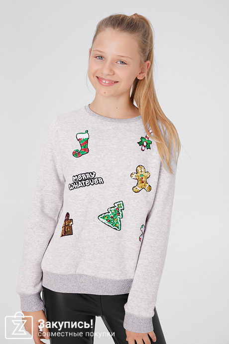 2 .Christmas sweatshirt - shiny размер: 58/164 (серый), вышел 590 р. Тоже хорошее качество