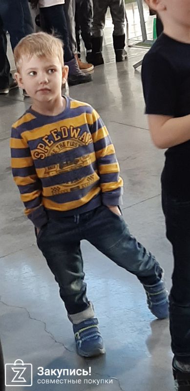 На сыне джинсы размер на 3 года (на фото рост около 95 см), джинса мягкая, хорошо тянется, есть подгиб, при необходимости добавит еще пару-тройку см.