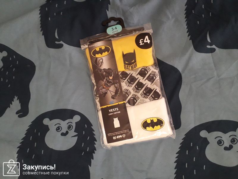 Нижнее белье asda. Труселя размер 4-5, тонкие, летний вариант, на моем 6летнем сыне как семейники смотрятся🤣 майки размер 3-4, трехлетнему немного свободно, сын оценил значки бэтмана)