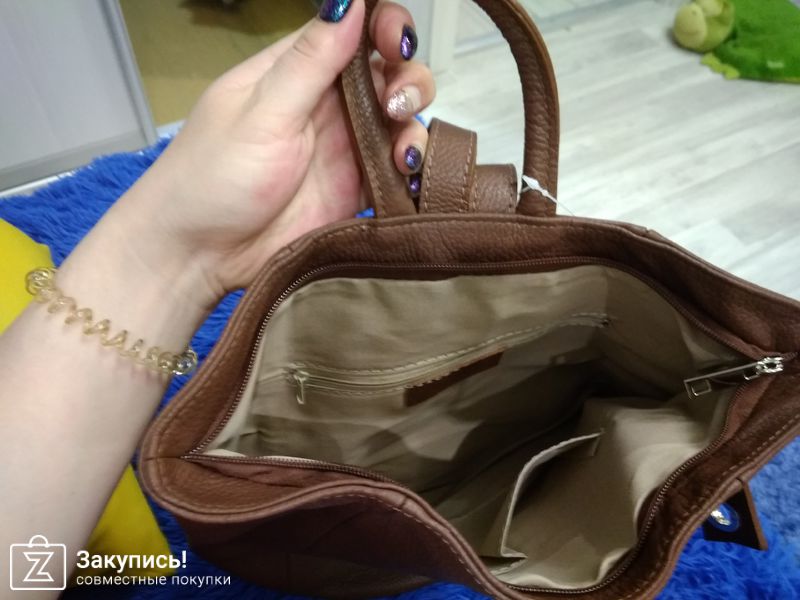 Красивый, необычный рюкзак. Но с цветом пролетела. Ожидала другой оттенок, цветопередача монитора неверная. Мне кажется он больше на коньяк похож. Был запах краски,на балконе выветрился. Внутри одно отделение,есть карман на молнии и 2 маленьких кармашка. Снаружи есть ещё карман на молнии.