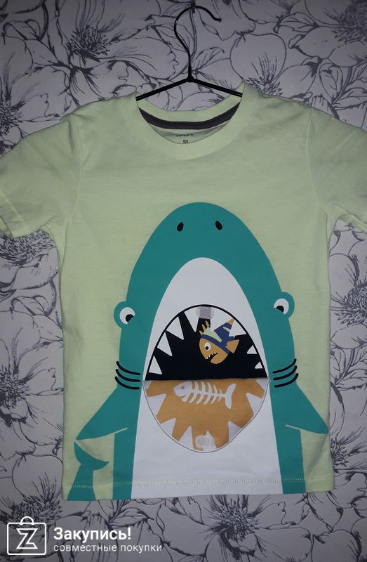 Интерактивные футболки carters. Изюминка футболок это открывающиеся элементы, необычно, детям нравятся🤩🤩🤩 размер 5, для моего миниатюрного 6летнего сына))) С акулой футба -неоновая, на фото ни как не смогла поймать цвет.