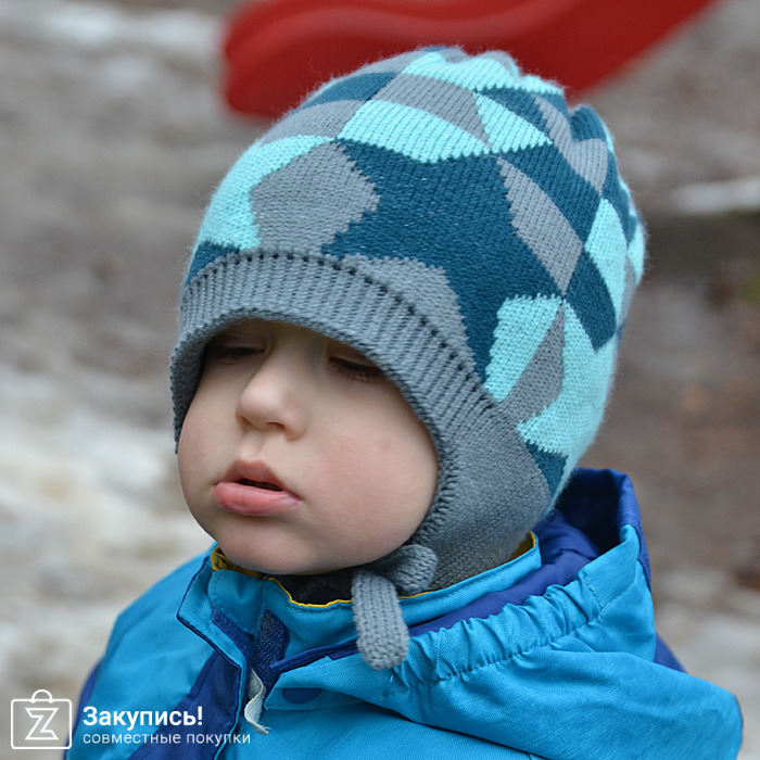 Шапочка на сыне Звездочет с подкладом, цвет т.серый+аквамарин+морская волна, размер 52-54. В прошлом году (на фото) была сильно велика, обхват головы был 48. В этом году вроде бы лучше, голова 49-50. Шапка толстая, на холодную осень-зиму. Шея хорошо закрыта.