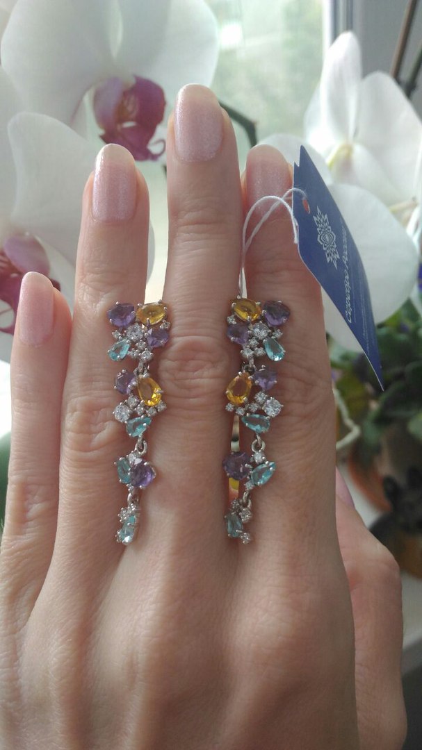 Серьги из серебра с кварцем и фианитами родированные (с-3098р) п. 294839+коммент. | СЕРЕБРО РОССИИ №4 mrsZak |