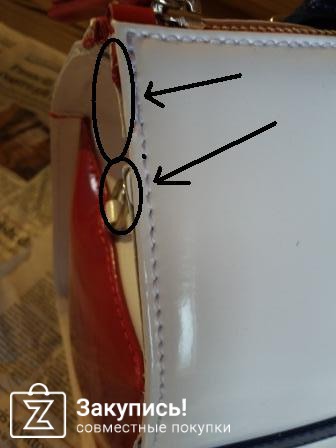 И с одной стороны не аккуратно сшиты детали - торчит часть нижней (выделила на фото). Думаю отрезать в мастерской.
