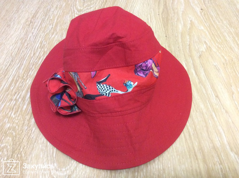Цветные вставки выполнены из ткани, на которой нарисованы туфли и босоножки, что странно для головного убора)))