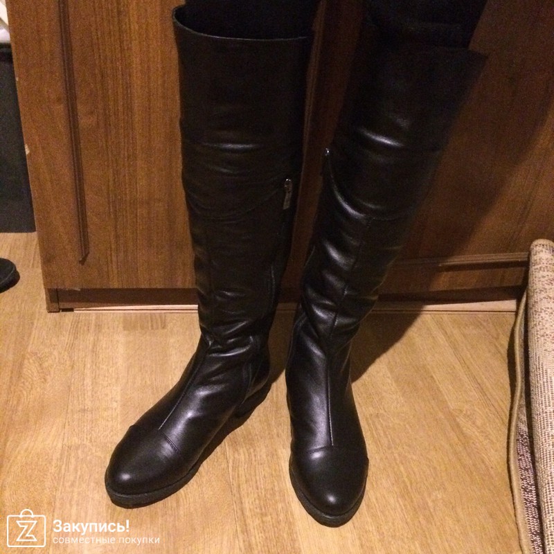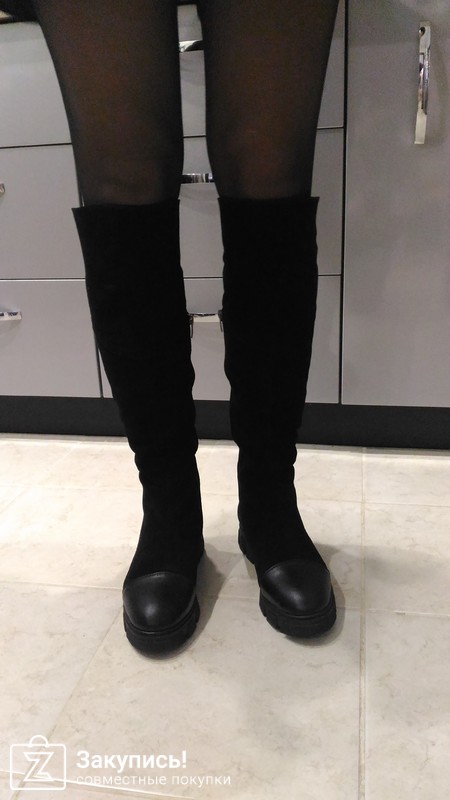 Забыла написать что это зима, меха нет только на колене, около 8 см кожа, если измерять сверху вниз . И еще рост модели на фото) 175см примерно и сапоги ей чуть-чуть прикрывают колено, мой рост 162см и колено сапоги закрывают почти полностью.