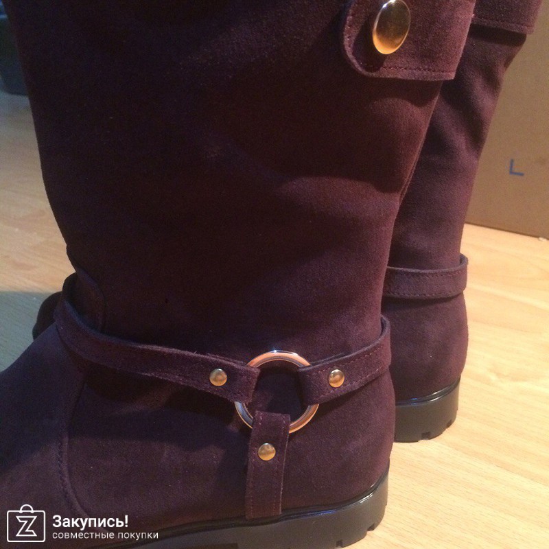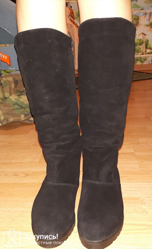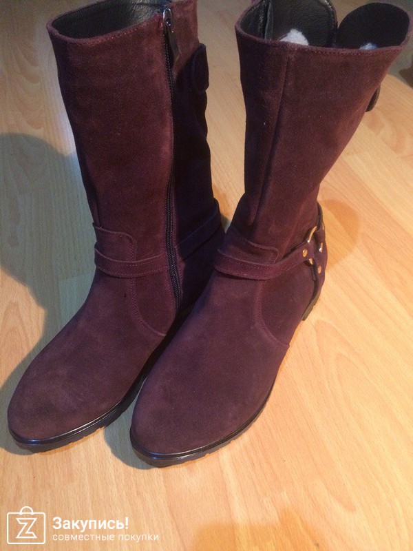 Заказывала зимние сапожки, евроутепление)думаю не замерзну,выше меха баечка,в размер отлично! ноге комфортно и уютно!!жаль фото не передает красоту цвета замши,просто супер!! по мне так немного подкачала подошва видом,дешевит что ли ?)) но всем понравились сапожки очень!