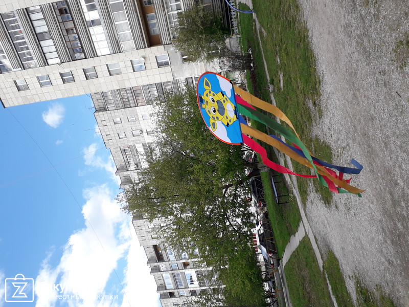 Ветер-не повод грустить и сидеть дома))) Новый воздушный змей пришелся по нраву всему двору, сам змей не большой см 30*30 но за ним тянется огроооомный хвос, метра полтора точно)