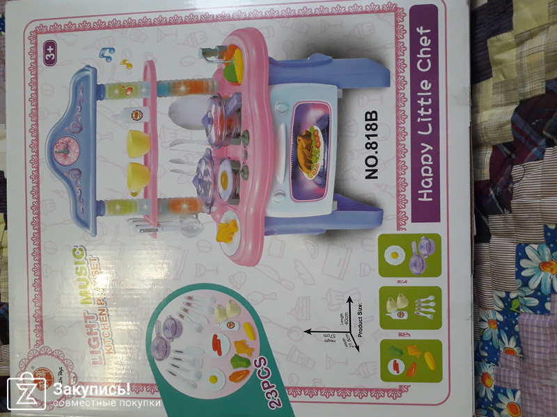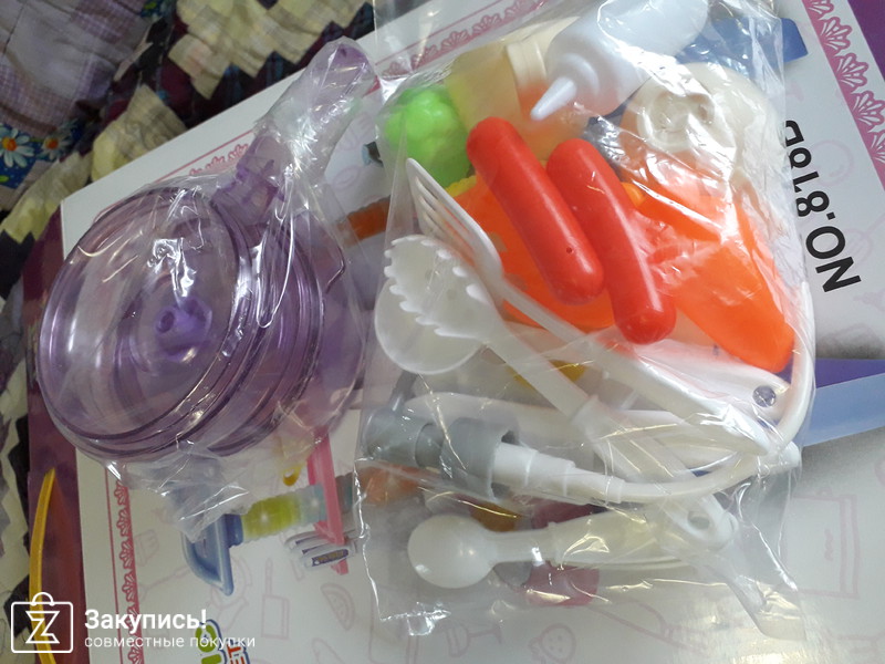 Еще заказывала набор кухонька с водичкой. Полностью не собирала, тк на подарок, толтко проверила работоспособность и комплектацию, водичка льется через помпу, при включение конфорки появляется характерный треск))) еще мелодия играет, и стойки с подсветкой. В наборе мини инструменты для кухни и продукты. Посудка их твердого пластика, думаю на долго хватит. Набором довольна, думаю и маленькая кулинарша оценит)))