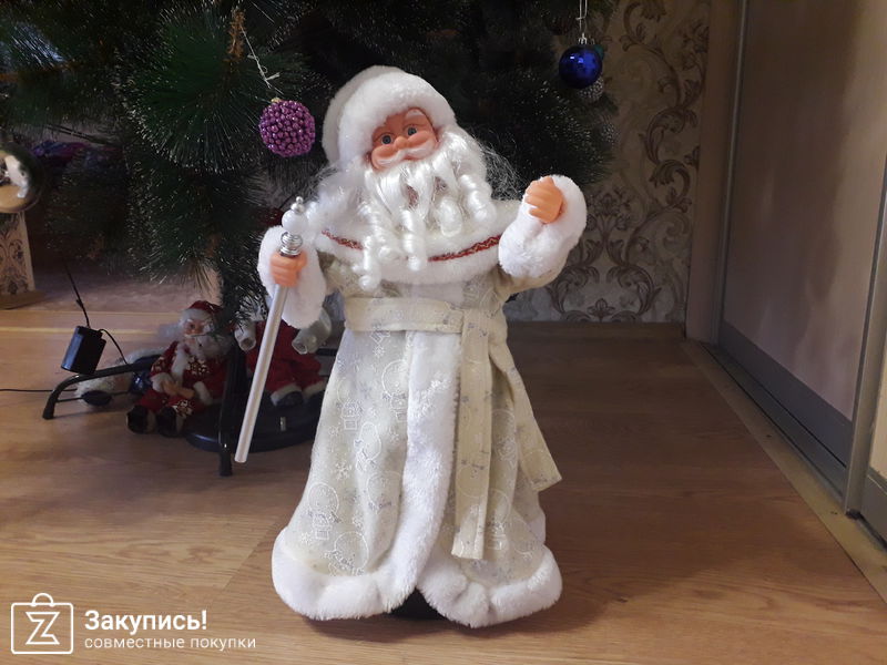 Заказывала хлопушки, пластили, и музыкального дед мороза))) ребенок 2-х лет от него в восторге, готовь весь день слушать. Игрушка 46 см, сначала короткое поздравление и дальше играет отрывок из песни \"В лесу родилась ёлочка:. Поворачивает голову и размахивает руками. Спасибо организатору!