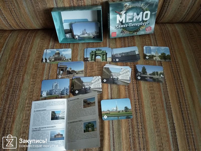 Помню , в детстве была подобная игра , кажется польская , Pecsiso . Там на карточках были старинные замки . Наконец - то я получила возможность приобщить к подобной игре внука . В коробке 25 дублированных фото Санкт- Петербурга и брошюра с исторической справкой о них . В меру азартно , познавательно , да ещё память и внимание развивает . Цена с оргом 126.88 .