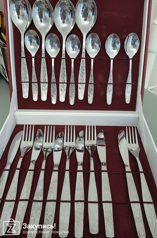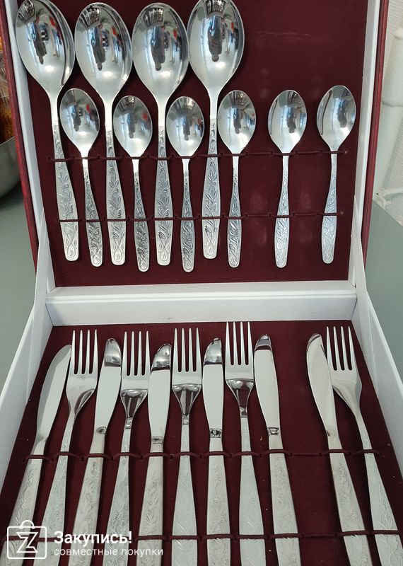 Еще приобретала: набор столовых приборов \" Уралочка\", выкупился не сразу, организатор Юлия согласовывала замены и возможное время ожидания, за что ей отдельное спасибо! Набор оч классный, ложки глубокие, нержавеющая стпль, подходит для посудомоечной машины)