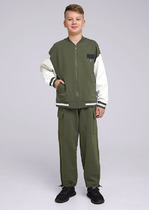 Базовые брюки с карманами на манжетах по низу. Выполнены из футера с лайкрой. Пояс регулируется шнуром.