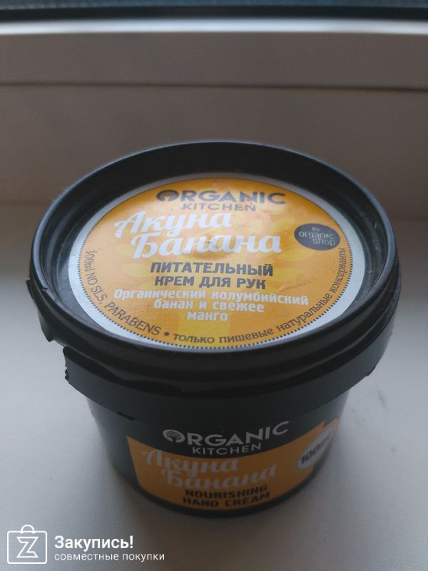Питательный крем для рук \"Акуна банана\" покупаю себе второй раз. очень нравится данная продукция, так ка отличается натуральным составом без силиконов и парабенов. Наносится легко, впитывается быстро, не оставляет пленки, пахнет изумительно.