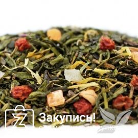 Зеленый китайский чай с добавлением кусочков дыни, манго, ягод красноплодной рябины, лепестков календулы, душицы