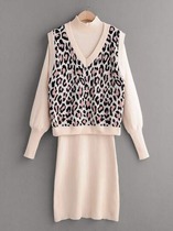 Свитер с леопардовым принтом и трикотажное платье в рубчик