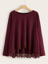Блузка кружевная вставка Dip Hem Tee, большие размеры