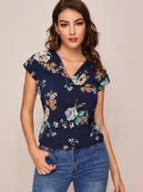 Блуза с V-образным вырезом и цветочным принтом