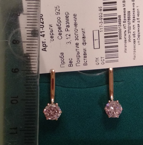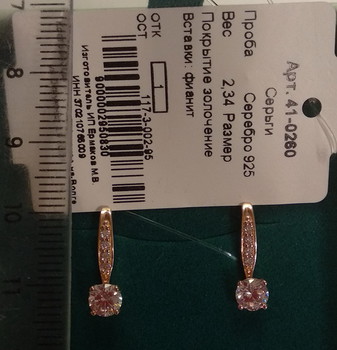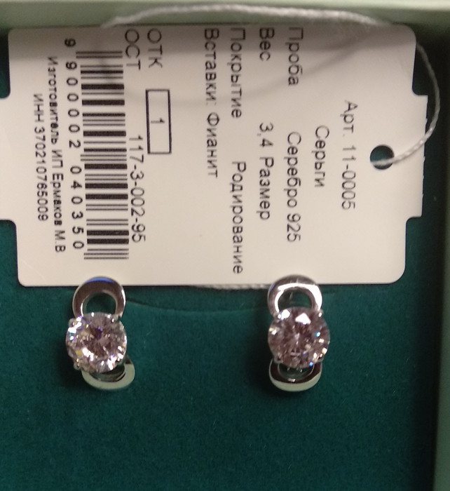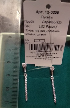 СЕРЬГИ ,СЕРЕБРО 925 3,4 ГР , ВСТАВКА ФИАНИТ , ЦЕНА С ОРГОМ 525 Р