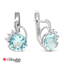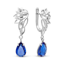 Серебряные серьги с голубыми фианитами 585