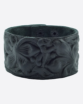 Кожаный браслет, тиснение цветы, черный, 40 мм BR-h-4002