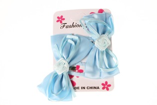Зажим для волос Бантик голубой с розочкой уп.2шт