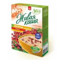 Живая каша быстрого приготовления овсяная с клюквой, отрубями и витаминами Vita,