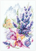 хлопковая канва Aida 14 ct, хлопковое мулине (20 цв.), игла, цветная символьная схема, инструкция по вышиванию.