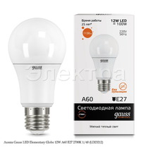 Лампа Gauss LED Elementary Globe 12W A60 E27 3000K 1/40 (23212)