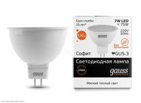 Лампа Gauss LED Elementary MR16 7W 3000K 1/10/100 (13517)