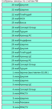 По срокам должны отгрузить в конце недели, точнее напишу в пятницу- субботу т.к отгружают не выкупами а пришидшими на склад торговыми марками (т.е на каждого производителя приходит отдельный счет) и при отгрузки мне пишут номера счетов которые отгрузили.