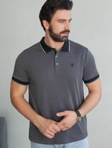 21.04 Vilatte Футболка-поло из фактурного трикотажа U49.012 т.серый однотонный