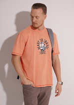 Футболка прямого силуэта. Укрепление по горловине спинки. Горловина из рибаны, по переду горловины отстрочка.
