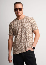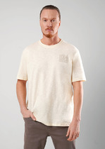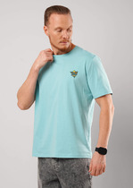 Футболка прямого силуэта. Укрепление по горловине спинки. Горловина из рибаны, по переду горловины отстрочка.— Описание у На сайте поставщика