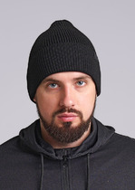 Мужская двойная шапка с отворотом, декорирована нашивкой логотип. Отлично подойдёт для тёплой зимы.